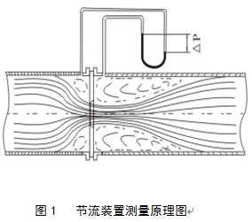 節流裝置測量流量的原理是依據著名的伯努力流體力學原理。如圖(1)所示在管道中安放一只節流件,有流體流過節流件時,會在節流件兩側產生一個壓力差(差壓P),這時的流量與差壓的平方根成正比,即:
