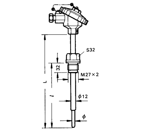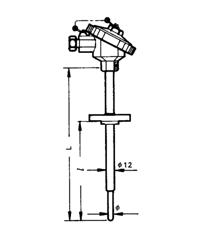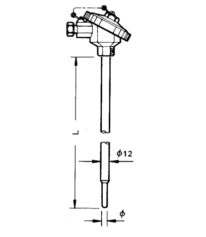 WZP-2312A(WZP-2316A、WZP-4312A、WZP-4316A)型裝配式熱電阻安裝固定裝置有固定螺紋、活動法蘭盤、固定安裝法蘭盤和帶固定螺栓錐形保護(hù)管裝置等形式。由于熱電阻傳感器采集溫度點(diǎn)在桿端部位置,為了保證熱傳遞采集速度以及檢測需要在傳感器的端部采用縮徑異徑測溫方式,一般桿端采用φ8mm或者φ6mm的測溫端。